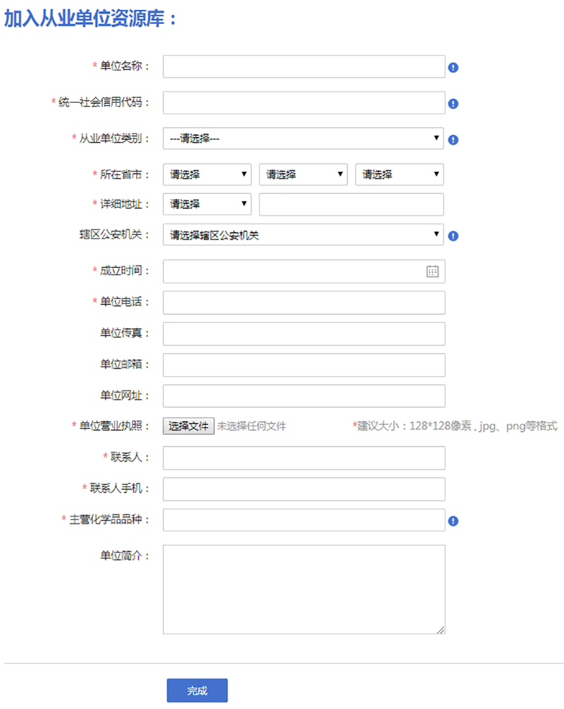 3、化学品信息需将企业涉及的易制爆化学品品种都录入,若企业实际上涉及的物品没有录入,则在后续的操作中无法选择到此物品进行操作。