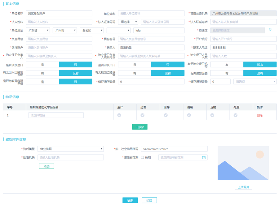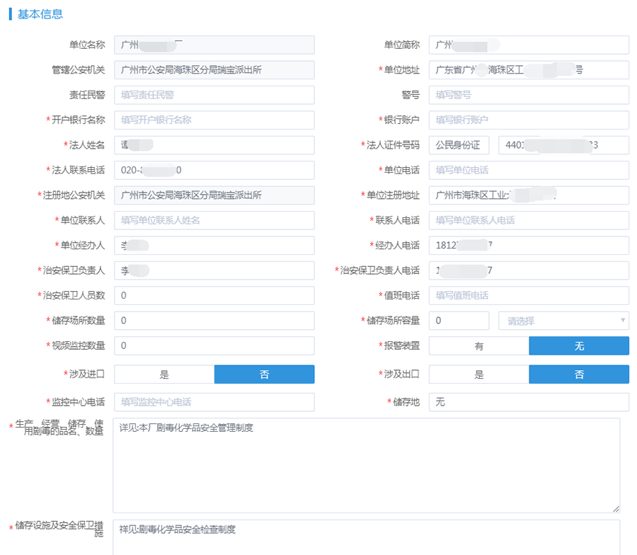 1、储存场所辖区机关请根据实际情况选择,可以企业注册所在地不一致。