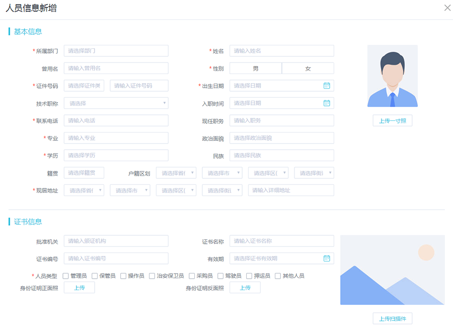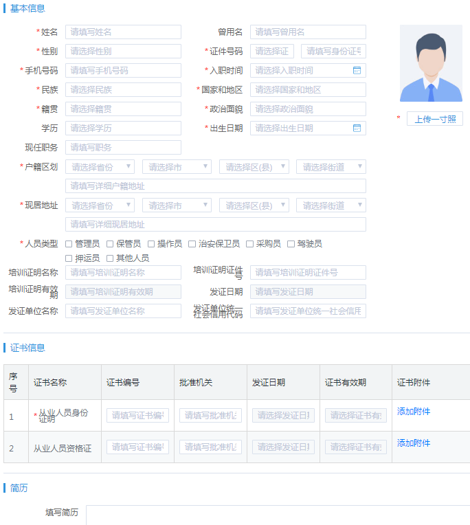 2、从业人员类型可多选,但治安保卫员不能兼任其他岗位。