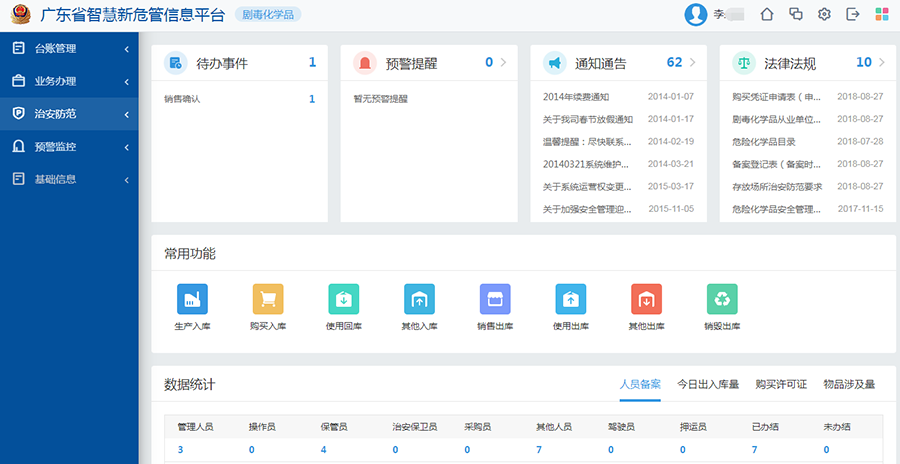 2、化学品信息需将企业涉及的剧毒化学品品种都录入,若企业实际上涉及的物品没有录入,则在后续的操作中无法选择到此物品进行操作。