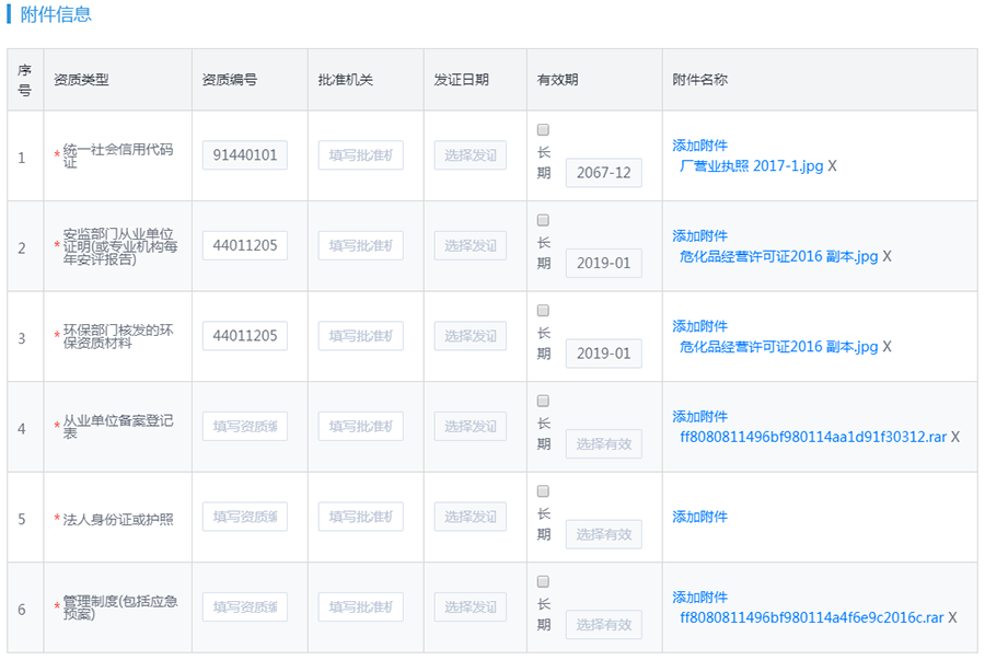 5、附件资质有效期为长期的,则勾选“长期”选项即可。