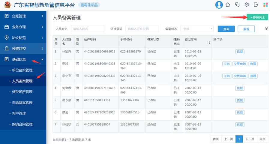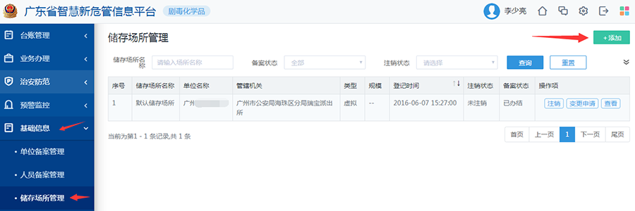 7、需先完成基础信息备案才能进行后续的“人员信息备案”和“储存场所信息备案”。