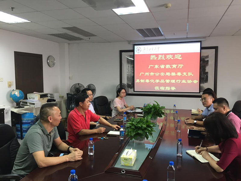 9月4日下午,广东省教育厅装备中心陈亮主任、广州市公安局禁毒支队张振群副大队长、市易制毒化学品管理行业协会江滨会长和刘晓云监事长等领导和专家,莅临广东工业大学指导工作并进行调研。学校实验室与设备管理处处长方岩雄、副处长王华辉参加了座谈会并陪同调研。