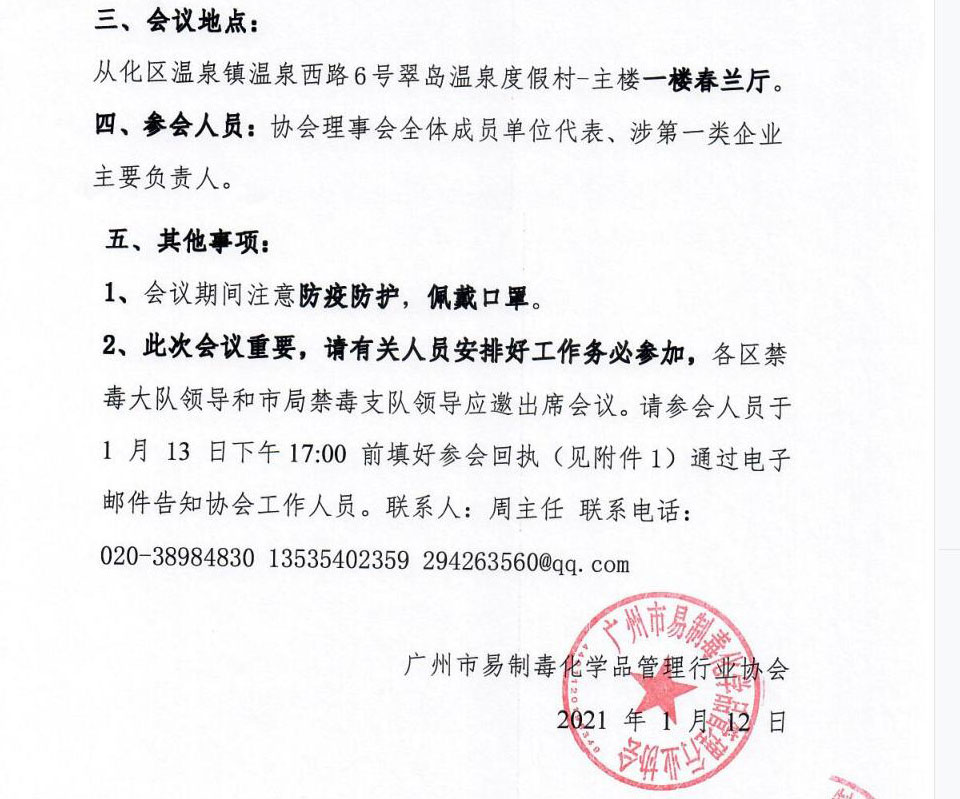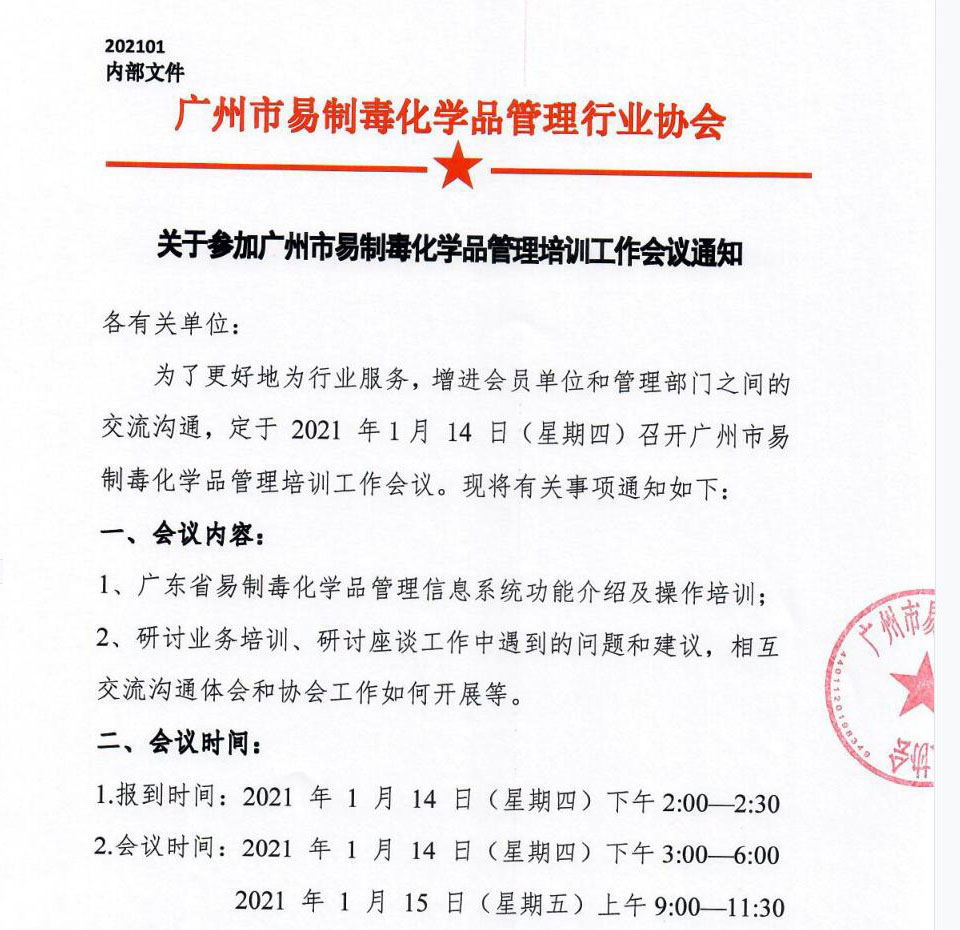 关于参加广州市易制毒化学品管理培训工作会议通知