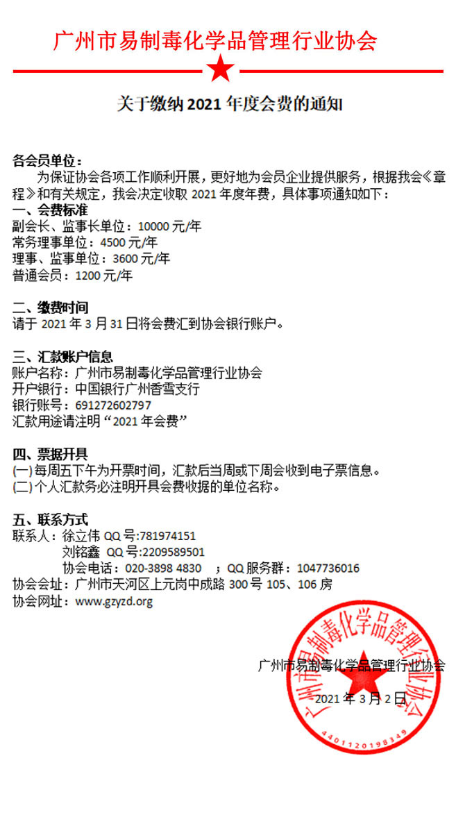 关于缴纳2021年度会费的通知