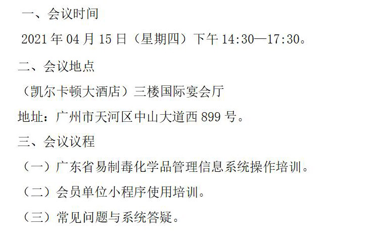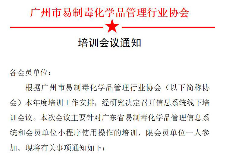 > 关于举办广州市易制毒信息系统培训会议的通知