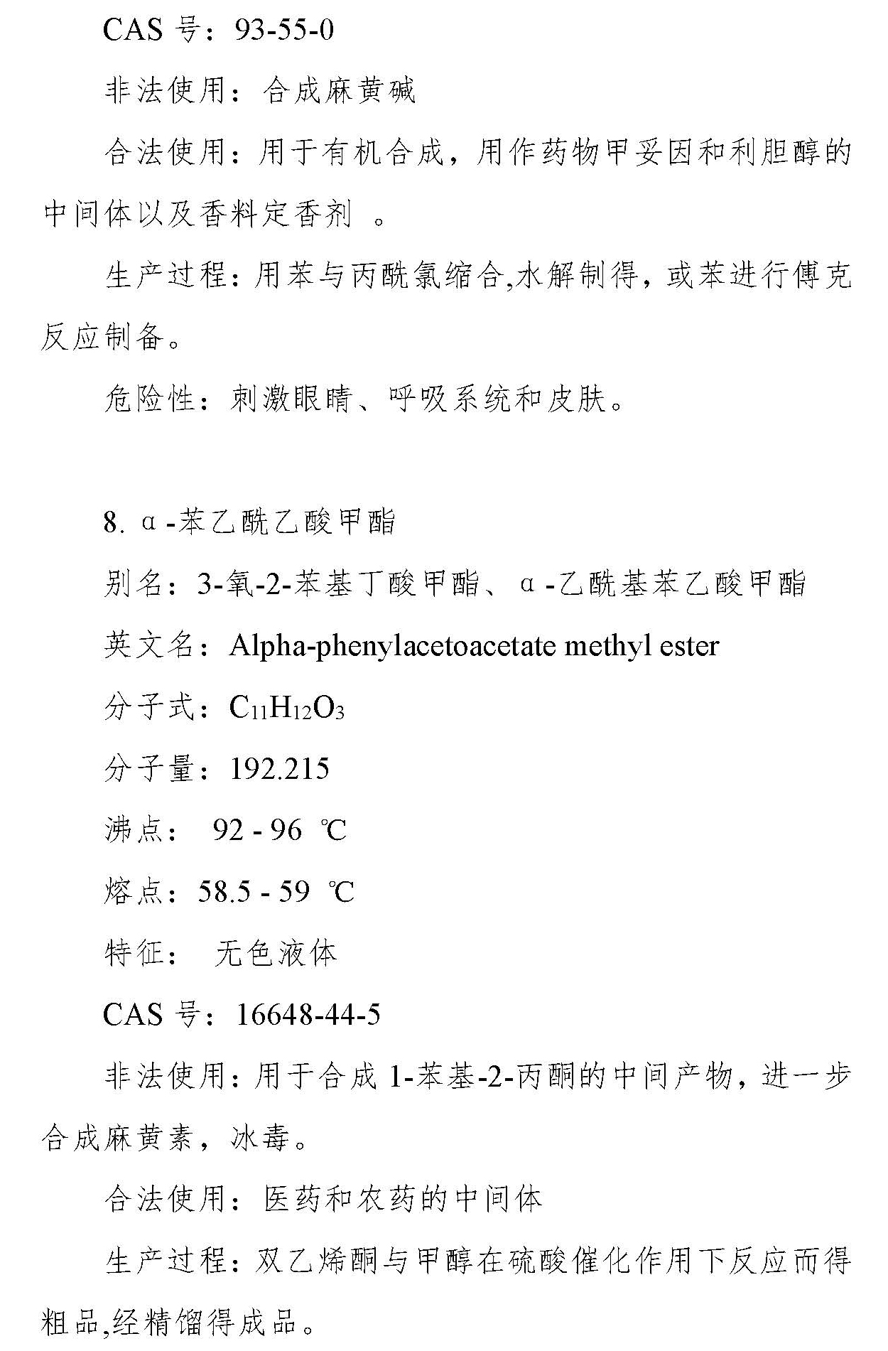 关于将3-氧-2-苯基丁酸甲酯、3-氧-2-苯基丁酰胺等6种物质列入易制毒化学品管理的公告