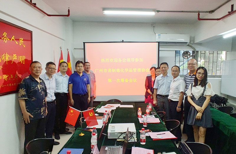 2019年8月6日,广州市公安局禁毒支队组织召开广州市易制毒化学品管理协会第一次筹备会议,广州市公安局禁毒支队副队长冯庆华、禁毒支队三大队大队长何家杰、禁毒支队三大队警官梁翼强及7家发起单位代表,共11人参加了会议。