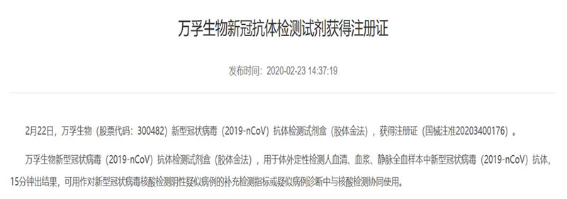 监事长单位广州万孚生物技术股份有限公司充分发挥POCT领军企业技术优势,积极投身新型冠状病毒性肺炎战“疫”,作为全国最早一批新冠病毒检测试剂盒研发单位之一,继成功研发新型冠状病毒(2019-nCoV)系列检测试剂之后,公司申报的适用于疫情现场的两个项目产品于近日获得国务院应对新冠肺炎疫情联防联控机制(科研攻关组)办公室推荐,并已通过国家药监局应急审批。